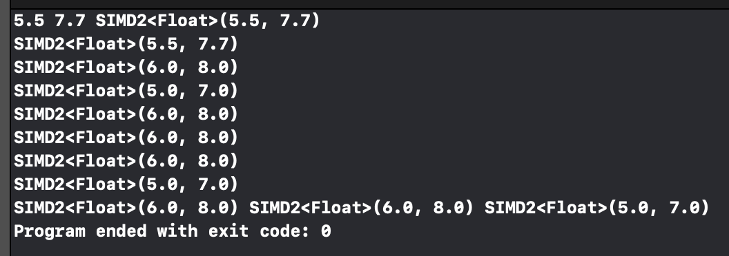 var result = a + b + c// SIMD2<Float>(5.5, 7.7)