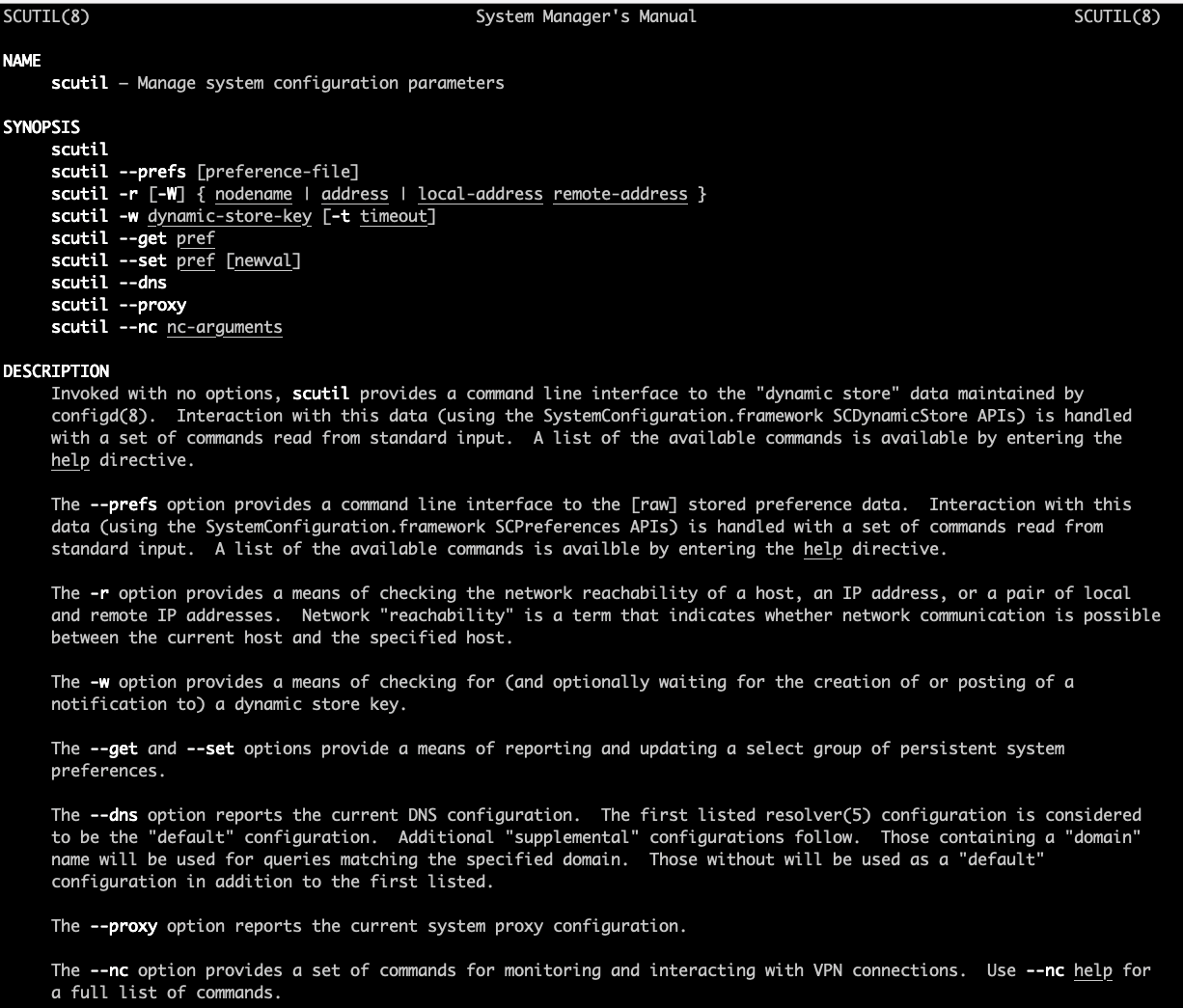 [MacOS] man scutil / 시스템 구성 정보 액세스 / system configuration parameters