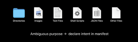 왼편의 타입들은 컴파일러가 해당 파일들의 목적이 분명하다고 판단해서, manifest 파일에 따로 명시하지 않아도 번들화를 해주는 반면에 우측의 타입들은 목적이 다양하다고 판단하기 때문에 manifest 파일에 명시적으로 작성해줘야 리소스 번들에 추가됩니다.
