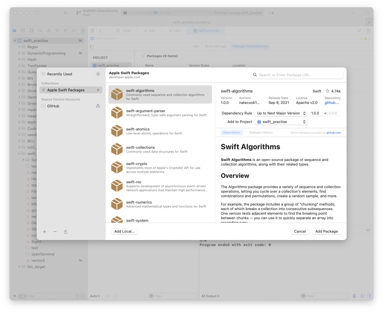 Xcode는 Swift 패키지를 생성 및 게시하고 패키지 종속성을 추가, 제거 및 관리할 수 있도록 지원합니다. Swift 패키지에 대한 지원은 오픈 소스 Swift 패키지 관리자 프로젝트를 기반으로 구축되었습니다.