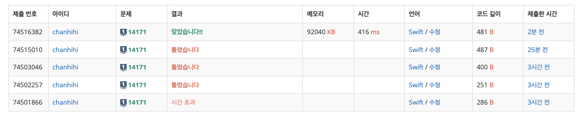 | 1946 swift - 신입 사원 / 시간 초과 해결 (0) | 2024.03.10 |