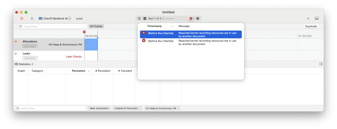 이 글은 instruments.app 앱으로 간단하게 테스트 프로그램의 Leaks check 및 트러블 슈팅에 대해서 다룬다.