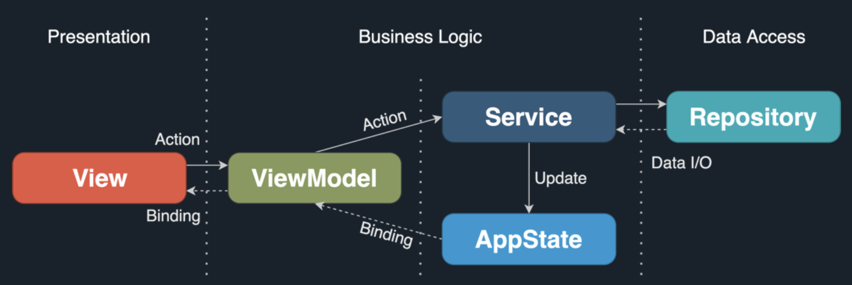 데이터의 흐름이 이미 쉽게 추적 가능하기 때문에, 별도의 프레임워크나 라이브러리 없이 Vanilla SwiftUI를 통해 구현이 가능하다.