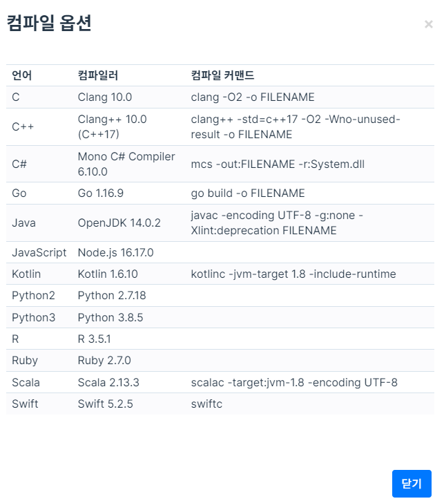 | C++ | Clang++ 10.0 (C++17) | clang++ -std=c++17 -O2 -Wno-unused-result -o FILENAME |