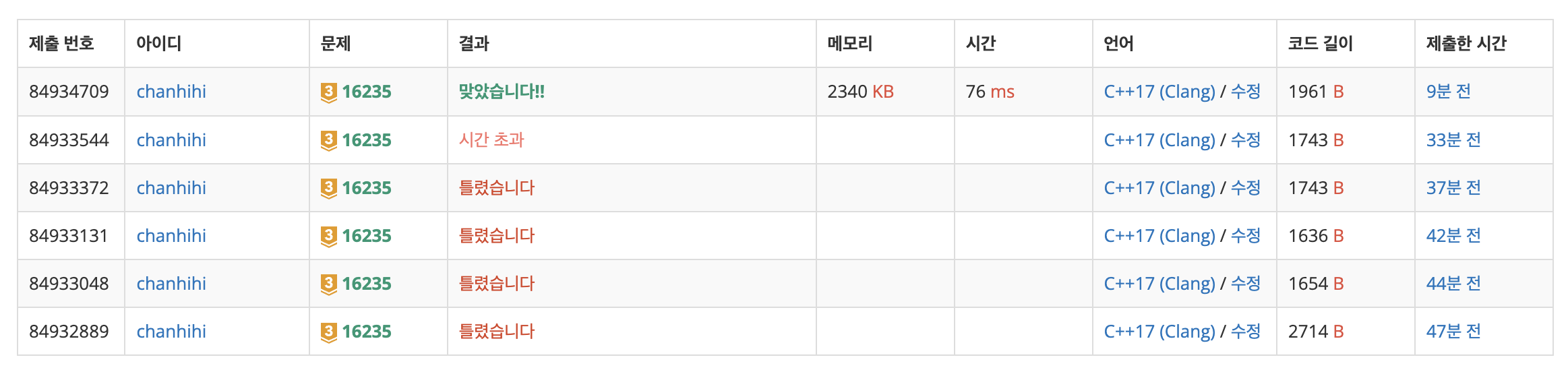 결국 맞췄을땐 vector로하면 시간초과가 난다는 것을 알게 되었다.