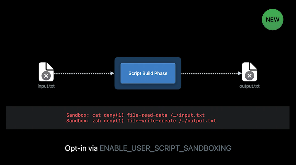ENABLE_USER_SCRIPT_SANDBOXING으로 커스텀하게 병렬화를 세세하게 조정 할 수 있음을 알려줍니다.
