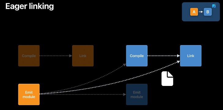 Eager linking을 사용하면 이 종속성이 깨지면서 종속 타겟이 더 일찍 링킹 될 수 있도록 합니다.