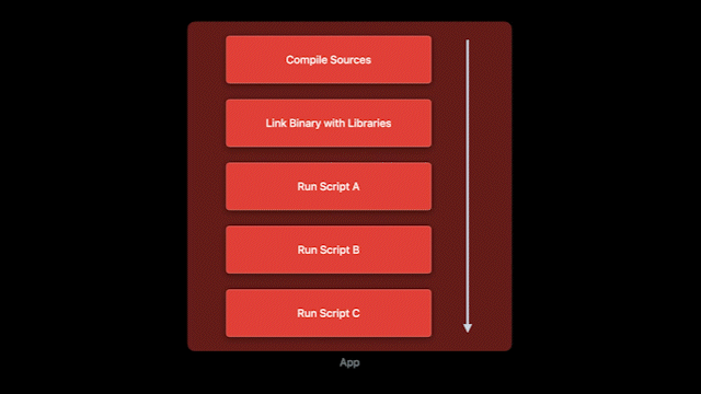 Xcode 빌드 시스템은 정교한 스케쥴링 엔진으로 빌드 단계를 병렬로 실행하여 가능한 많은 병렬성을 추출합니다.