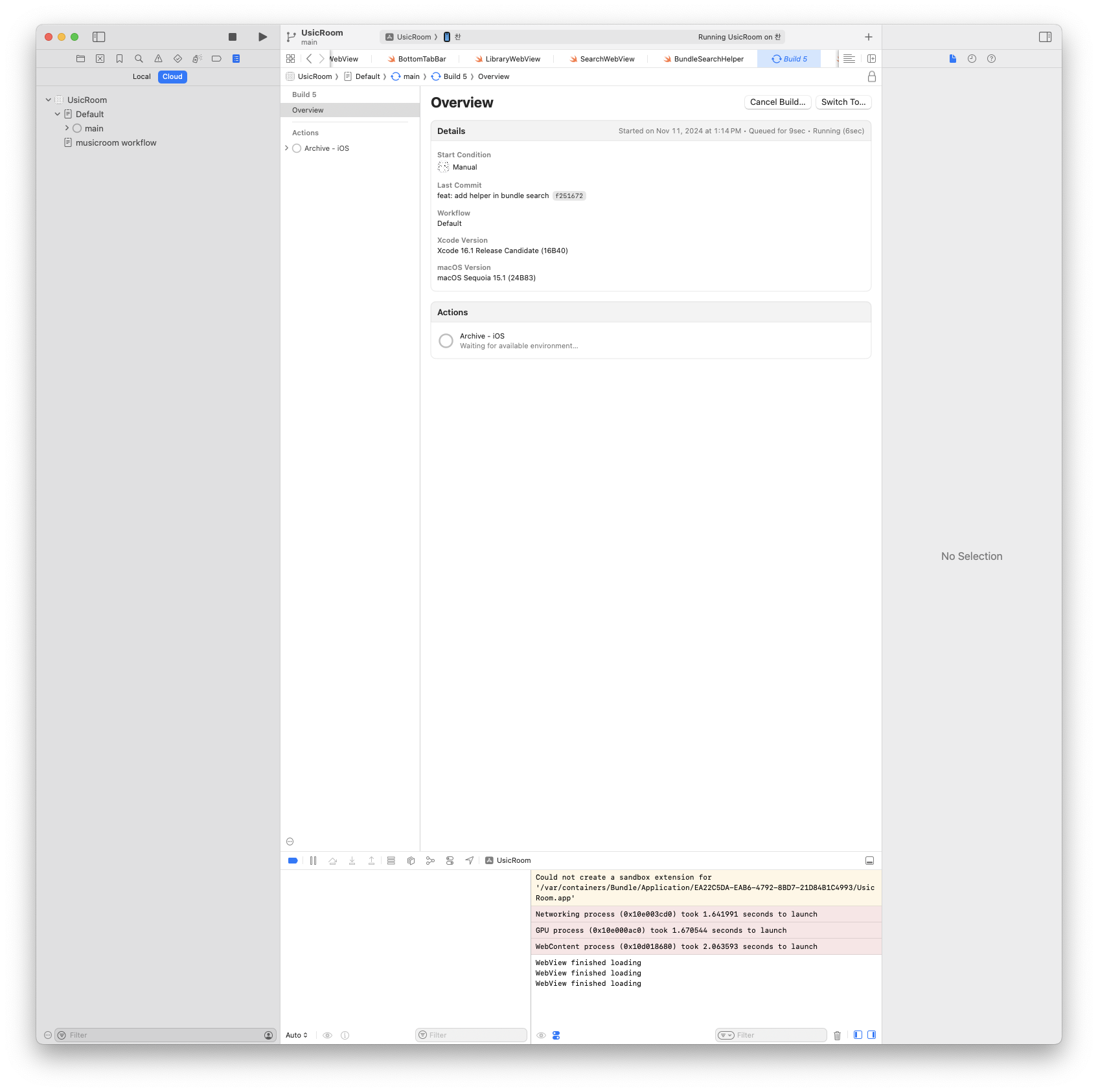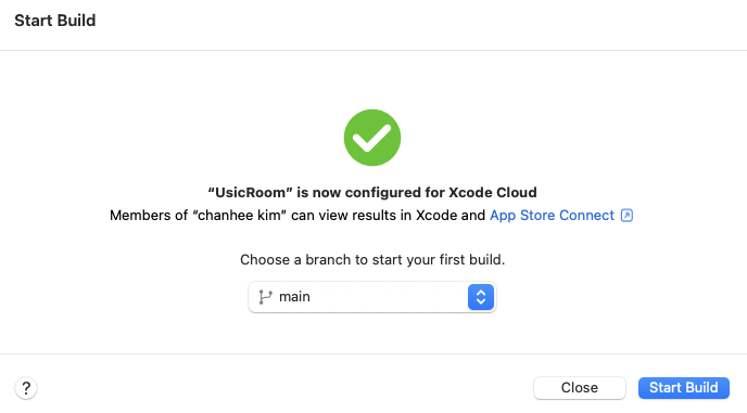 Xcode에서 Cloud를 사용하여 Start Build를 진행할 수 있게됩니다.