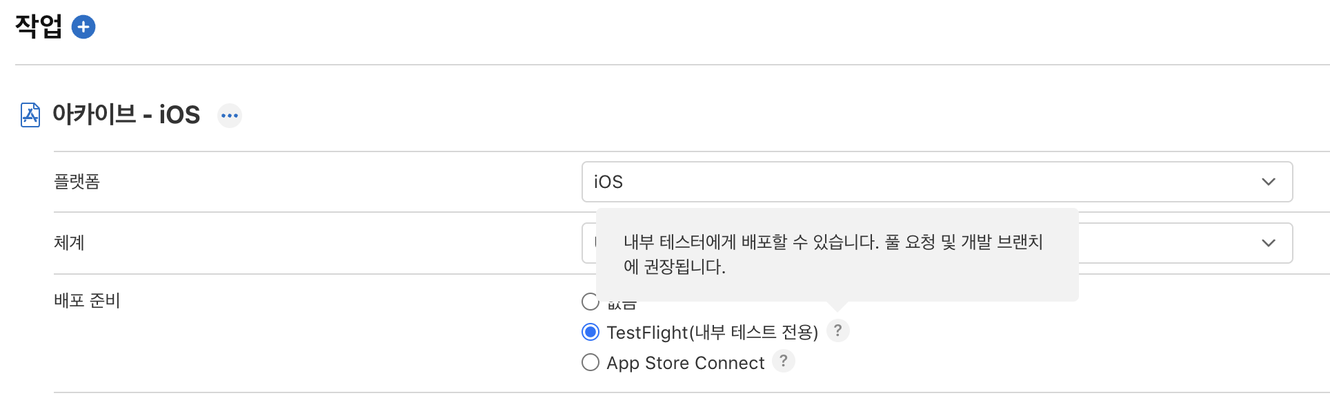 위와 같이 TestFlight로 바로 올리는 Workflow를 작성할 수 있으며, App Store Connect 자체로 바로 출시 영역으로 보내는 작업도 실행할 수 있습니다.