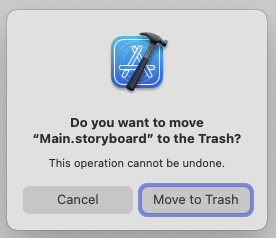 1. Main.storyboard(Main) 삭제(move trash)