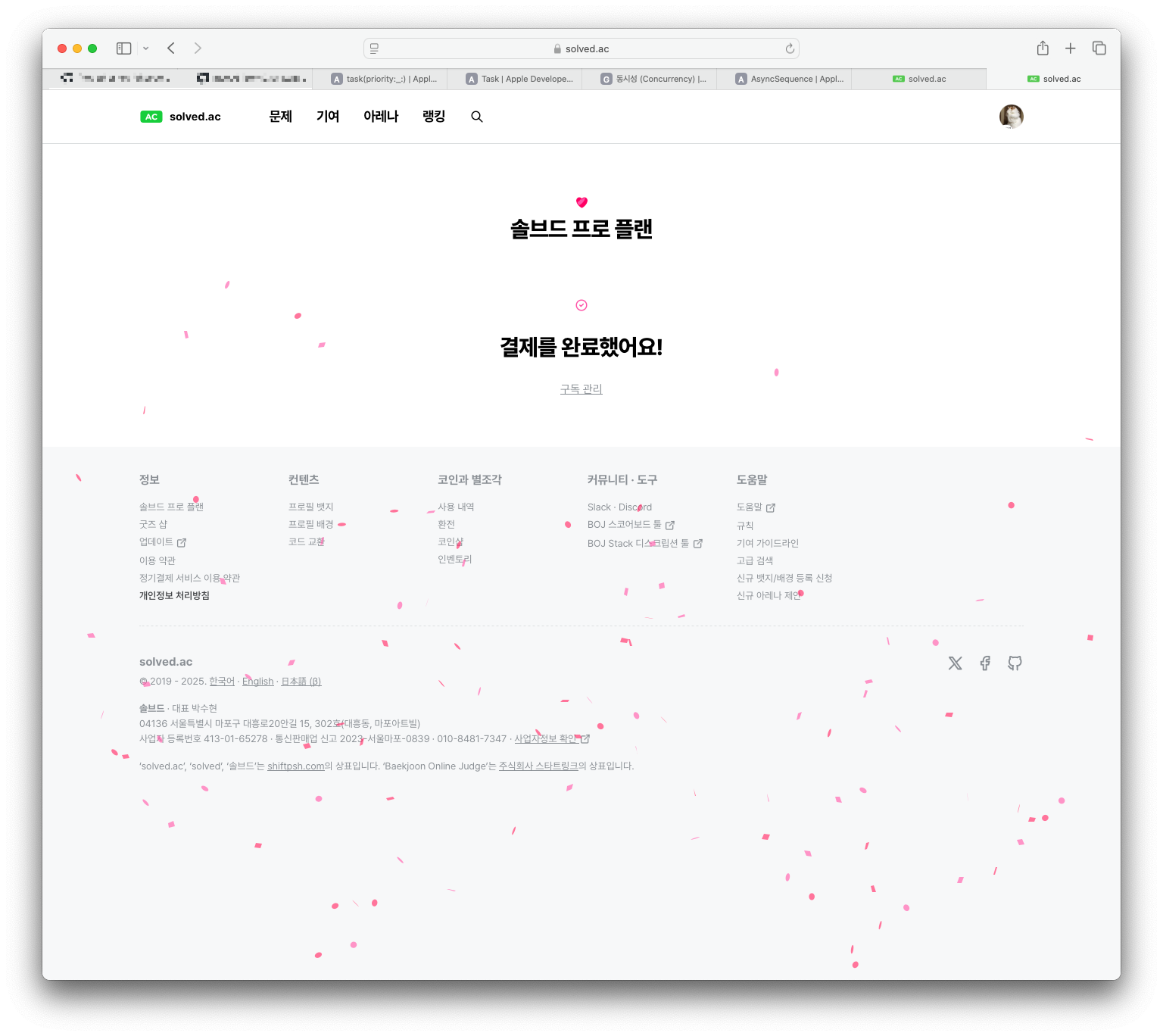 프로 플랜 결제를 완료하면 축포를 쏴준다, 깃허브 스폰서 비용 지출했을때랑 비슷한 기분이 되었다. 🎉