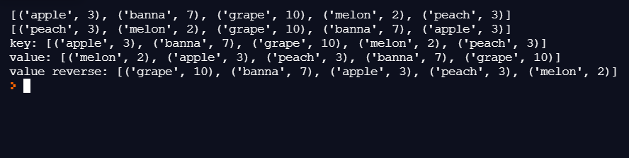 sorted2 = sorted(fruit.items(), key=f2, reverse = True)